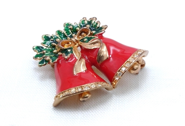 TOP アイテムブローチ 商品一覧 赤いエナメルのクリスマスベルのブローチ小さなラインストーンで飾られた艶やかな赤いエナメルのクリスマスベル。緑の葉と金のリボンで飾られた小さめのブローチです。大きさ 縦:3cm 横:3cm ヴィンテージブローチ クリスマスベル 価格: ¥8,600 (税込) 販売期間: 数量: 個 在庫: 1個 在庫 1個 返品についての詳細はこちら