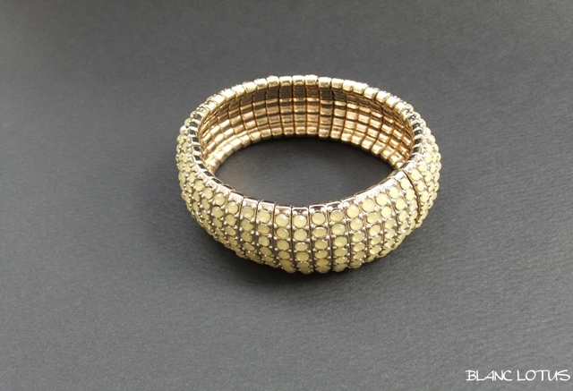 TOP アイテムブレスレット 商品一覧 ゴールドカラー地にレモンイエローのラインストーンがついたブレスレット。それぞれのパーツをゴムで繋いである伸縮性に富んだ品です。幅: 約2.5cm 直径: 約5.5cm ヴィンテージブレスレット ゴールド地にイエローラインストーンのブレス 価格: ¥0 (税込) 販売期間: 数量: 個 在庫: SOLD OUT 在庫 SOLD OUT 返品についての詳細はこちら
