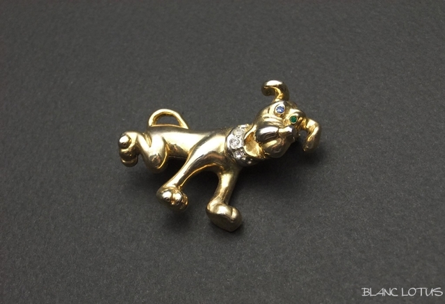 TOP アイテムブローチ 商品一覧 耳をひょこんと立てた犬のブローチ。首輪と目にラインストーンが嵌まっています。笑っている顔がちょっとコミックフェイスです。大きさ 縦3.5cm×横3cm ヴィンテージブローチ ラインストーンの首輪をした犬 価格: ¥3,740 (税込) 販売期間: 数量: 個 在庫: 1個 在庫 1個 返品についての詳細はこちら