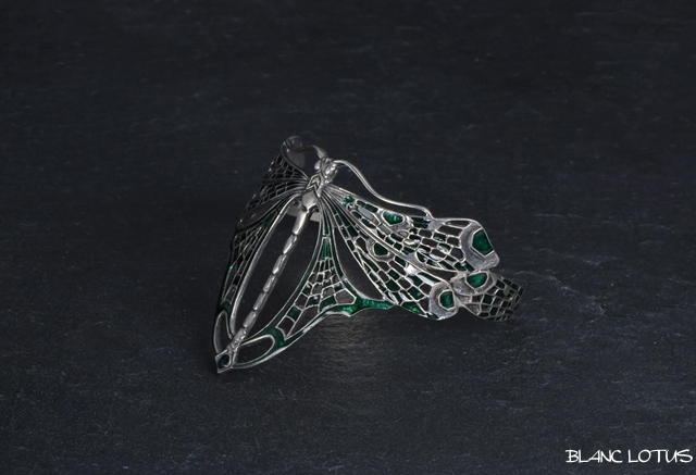 TOP アイテムブレスレット 商品一覧 ドラゴンフライを模したシルバーのブレスレット。 透かしでできた翅をグリーンのエナメルで彩り、尾部の先端にオニキスが飾られています。 アールヌーボー時代の職人技が感じられます。直径 約6cm素材 スターリングシルバー アールヌーボー ドラゴンフライのブレスレット 価格: ¥0 (税込) 販売期間: 数量: 個 在庫: SOLD OUT 在庫 SOLD OUT 返品についての詳細はこちら