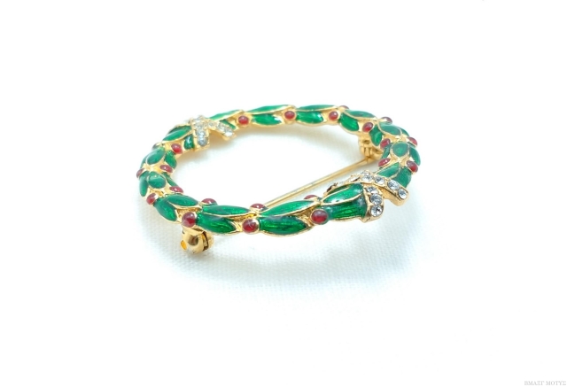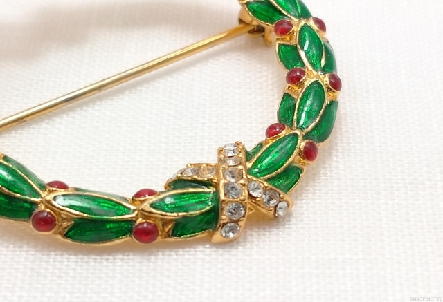 TOP 商品一覧 アイテムブローチ エナメルのクリスマスリースのブローチ グリーンのエナメルがきれいなブローチです。所々に赤い柊、そして上下をクリアラインストーンで束ねたエレガントな品です。大きさ 縦横:4cm ヴィンテージブローチ クリスマスリース 価格: ¥8,600 (税込) 販売期間: 数量: 個 在庫: 1個 在庫 1個 返品についての詳細はこちら