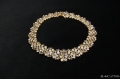 クリスタルとブルーのラインストーンがコンビになったチョーカー。ブルーのラインストーンはクリスタルで作られたチョーカーの上に覆い被さるようにつけられています。シンプルでありながら華やかさを感じさせる品です。