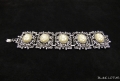 TOP アイテムブレスレット 商品一覧 シルバートーンの凝った台座に淡いクリーム色のフェイクパールがセットされたブレス。大きめのパールがアクセントになっています。オープンワークの台座は軽やかさを感じさせます。長さ 約16cm 幅 約4cm 1960's 淡いクリームのフェイクパールがついたシルバーブレスレット 価格: ¥17,000 (税込) 販売期間: 数量: 個 在庫: 1個 在庫 1個 返品についての詳細はこちら