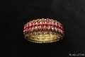 フロント側にガーネット色のクリスタルがみっしりと埋め込まれ、バックはオープンワークになっています。オープンワークの繊細さと留め金の装飾が美しい品です。経年のため金属に変色が見られる部分があります。
