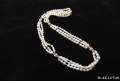 3連のパールをゴールドの玉で束ねたネックレス。ところどころにゴールドを配することにより華やかに仕上がっています。また小粒のパールが3連なので落ち着いたボリューム感があります。留め金部分のマーカーには小さなダイヤ。品の良い華やかな品です。