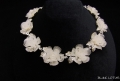 淡くけぶるような乳白色の花のネックレス。セルロイドでできた花がラインストーンでつながった可憐な品です。
