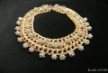 Anka(アンカ) ゴールドの太い鎖を編んだ中に細い鎖を絡ませた幅広の帯状のネックレスです。ラインストーンを施した玉をネックレスの外周と帯の中心にセットしており、ゴージャスという言葉が相応しい品です。コンディションは良好です。