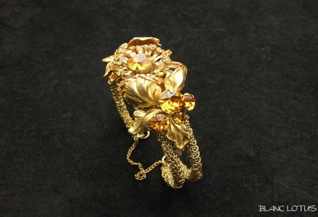 Miriam Haskell(ミリアム・ハスケル) アンバーカラーの花のネックレス、イヤリング、ブレスレットのセット